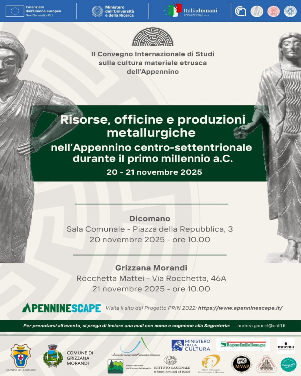Il Convegno si prefigge di fare il punto sulle forme di produzione e consumo dei metalli nell’Appennino settentrionale in periodi cruciali del I millennio a.C., non mancando di guardare alle dinamiche antecedenti dal Bronzo finale. Si tratta di un appuntamento che rappresenta la tappa conclusiva del progetto PRIN 2022 Apenninescape. Paesaggi marginali e processi produttivi lungo i distretti vallivi del Reno e del Bisenzio-Sieve durante il I millennio a.C., che ha coinvolto le Università di Bologna, Firenze, Pisa e il CNR-ICCOM. Il convegno è inoltre parte di un più ampio progetto avviato dalle Università di Bologna e Firenze nel 2019 con il I Convegno dedicato alla ceramica e che vuole indagare il territorio appenninico come unitaria e coerente cerniera tra le Valli dell’Arno e del Po.