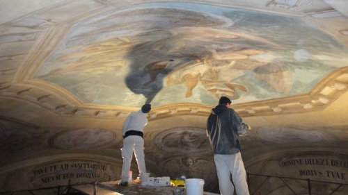 Basilica di S. Quirino - particolare del restauro degli affreschi interni
